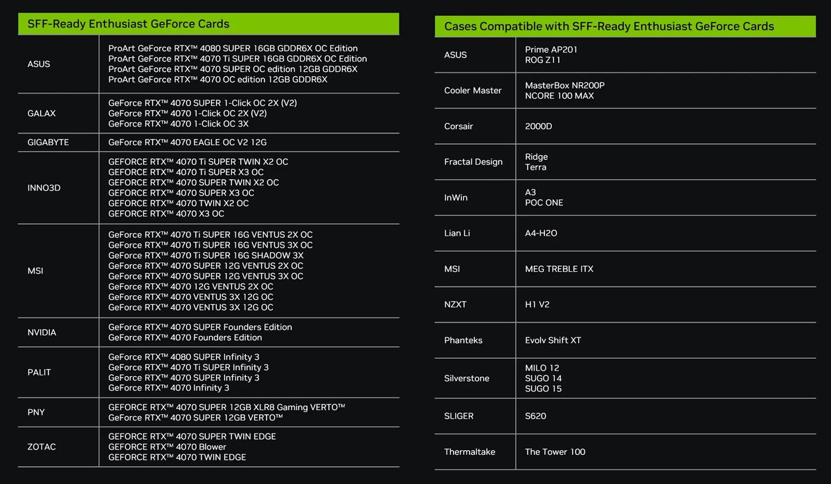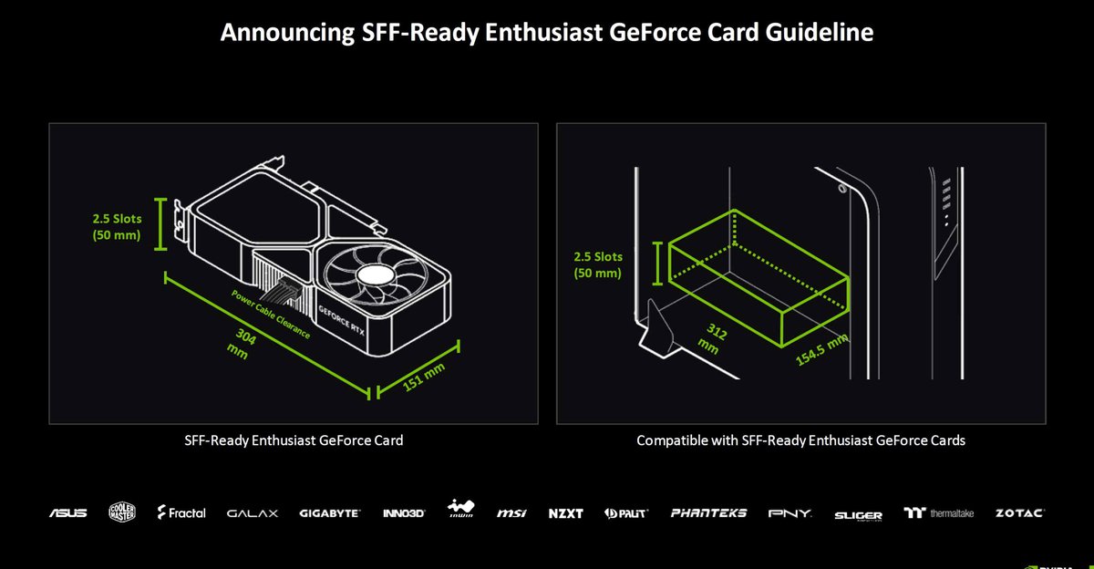 Устройства, подходящие для использования в компактных PC, будут отмечаться маркировкой SFF-Ready. Из видеокарт Nvidia такая маркировка появится на GeForce RTX 4070, RTX 4070 Ti, RTX 4070 Super, RTX 4070 Ti Super, RTX 4080 Super нескольких компаний-производителей.