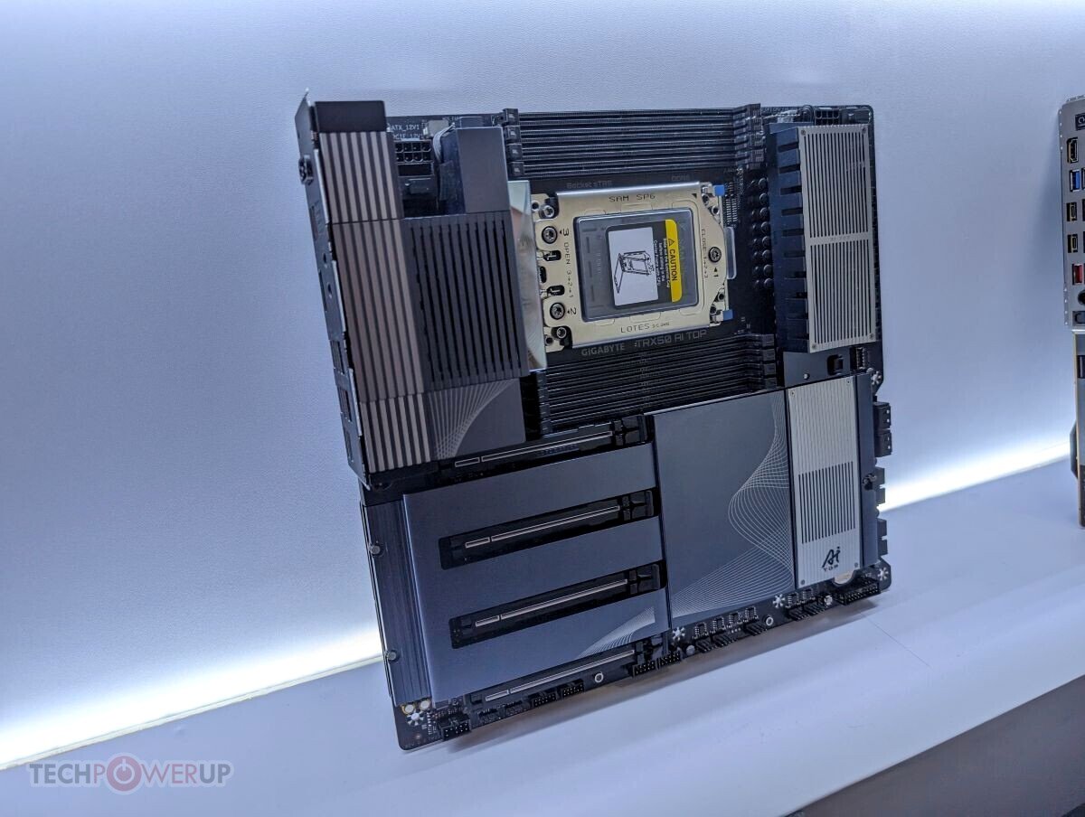 Кроме того, анонсирована материнская плата TRX50 AI TOP, снабженная четырьмя слотами PCIe 5.0 x16. Предполагается, что все четыре слота будут заняты видеокартами — благодаря двухслотовым моделям это возможно.