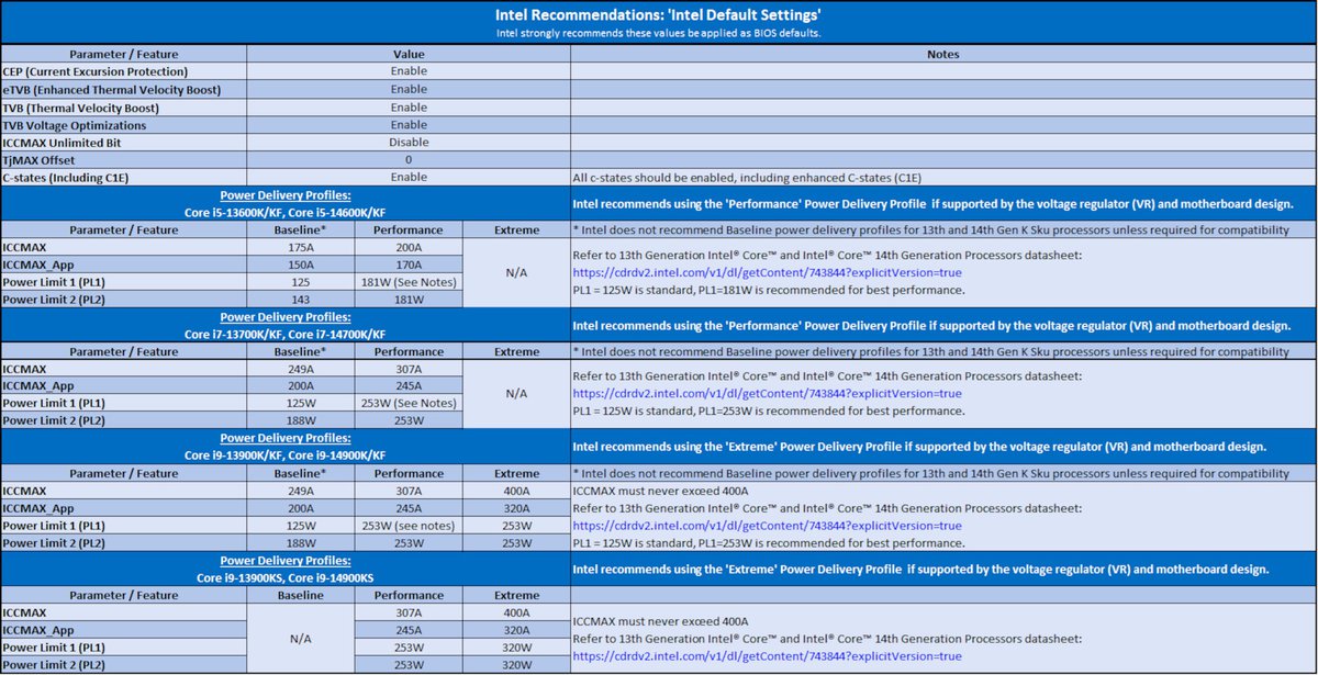 В компании отдельно подчеркивают, что значение ICCMAX ни в коем случае не должно превышать 400A. Рекомендации подходят и процессорам из линейки K, и чипам из линейки KF.