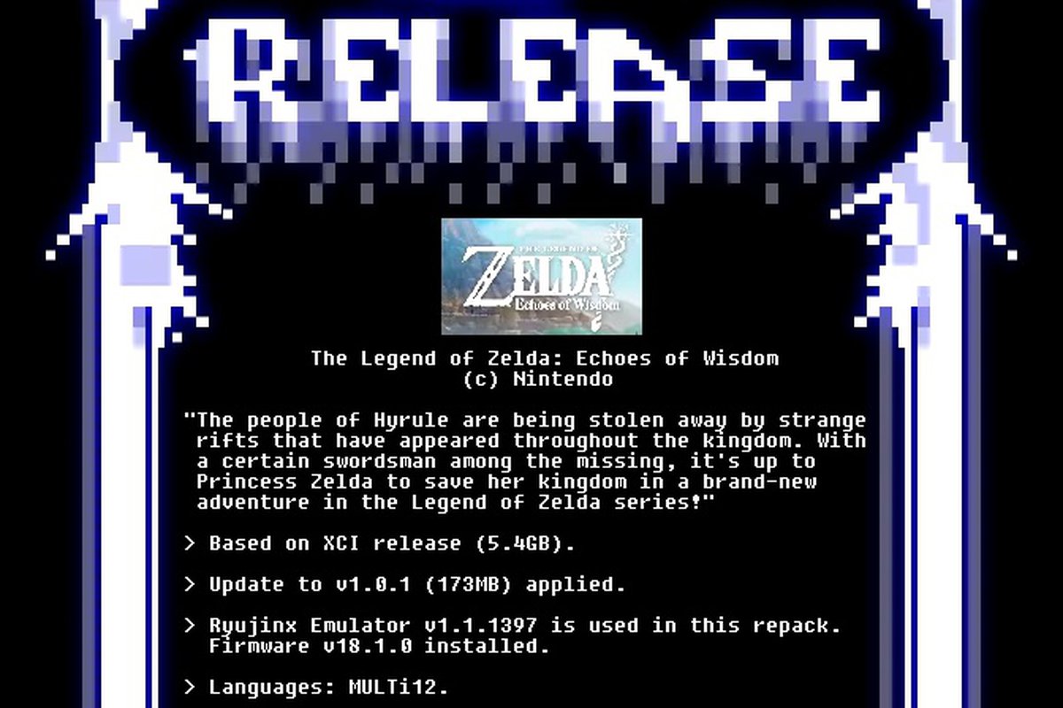Игра оказалась довольно компактной: репаки Echoes of Wisdom занимают порядка 3 гигабайт. Запустить утекшую версию можно как на взломанной консоли Switch, так и на одном из ее эмуляторов.