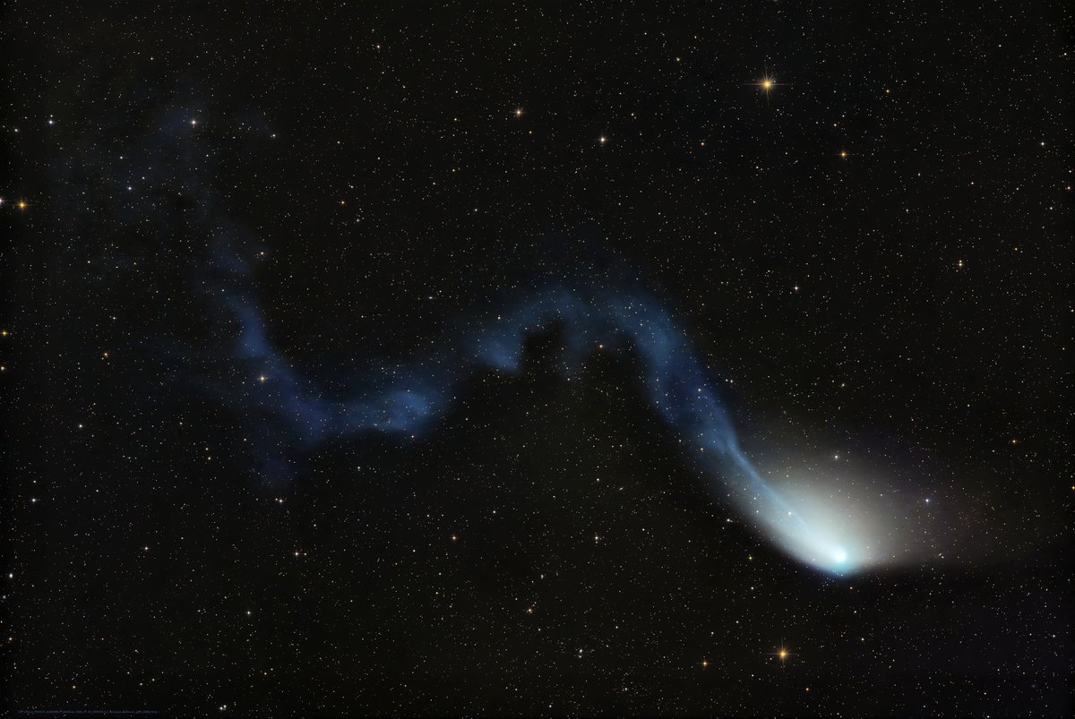 Именно под влиянием потоков солнечного ветра хвост кометы Ольберса начал «извиваться» или «скручиваться». Вот как он выглядит на кадре, сделанном астрофотографом Доном Бартлеттом.