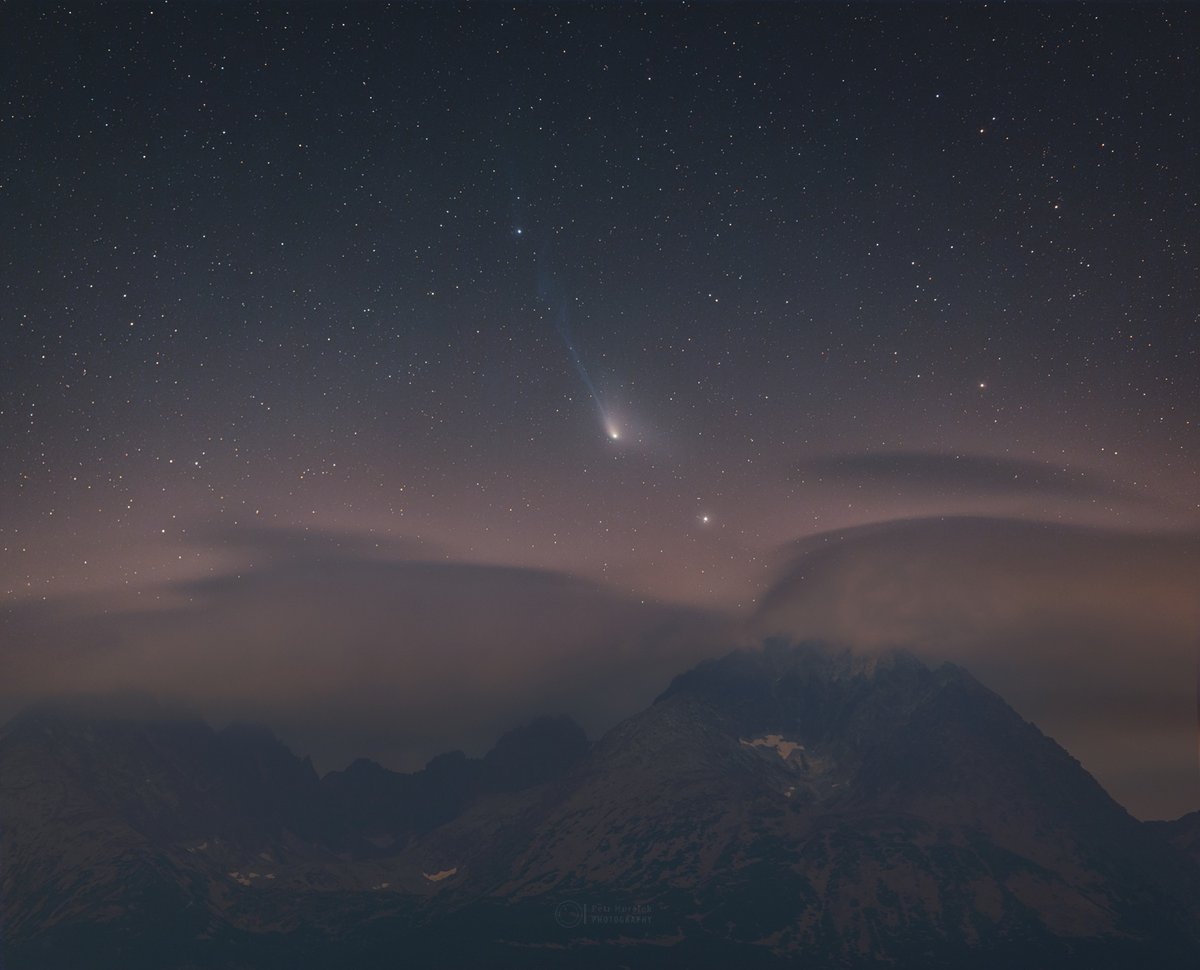 С другого ракурса «скрученный» хвост кометы Ольберса выглядит не так впечатляюще. Эту фотографию сделал словацкий астроном Петр Горалек.