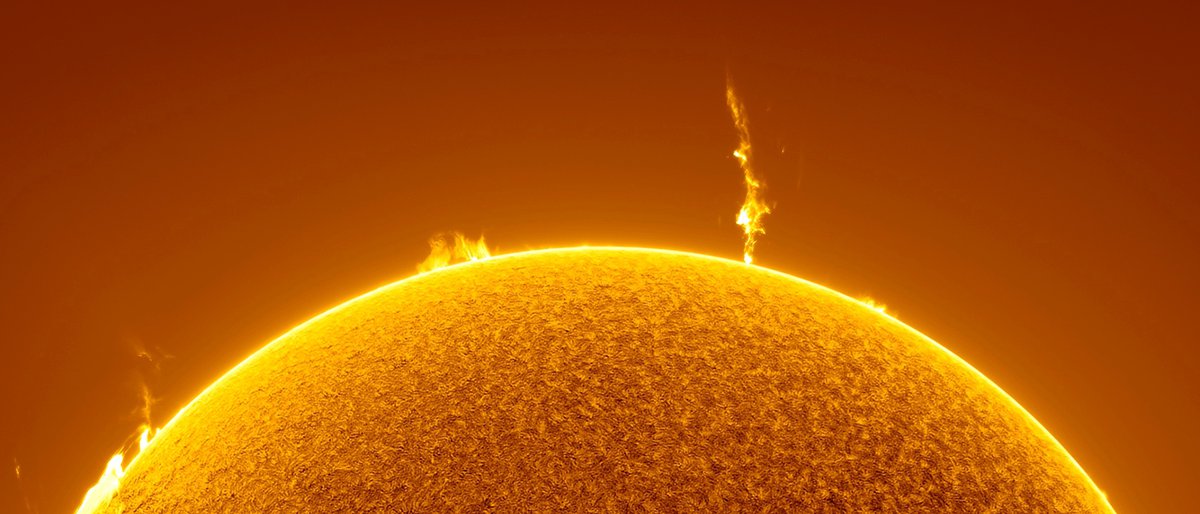 Для сравнения: вот так выглядят обычные выбросы солнечной плазмы. На фотографии, сделанной аргентинским астрономом Эдуардо Шабергером Пупо, зафиксирован столб плазмы длиной примерно в 200 тысяч километров.