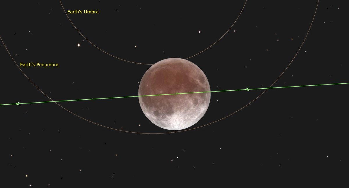 Тенью будет полноценно перекрыта лишь верхняя часть Луны. Большая часть спутника окажется в полутени Земли, благодаря этому Луна будет казаться красновато-коричневой.