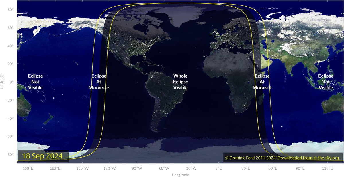 Частичное лунное затмение произойдет в ночь с 17 на 18 сентября. Его смогут увидеть жители обеих Америк (но Аляске не повезло), Европы, почти всей Африки и западных регионов России.