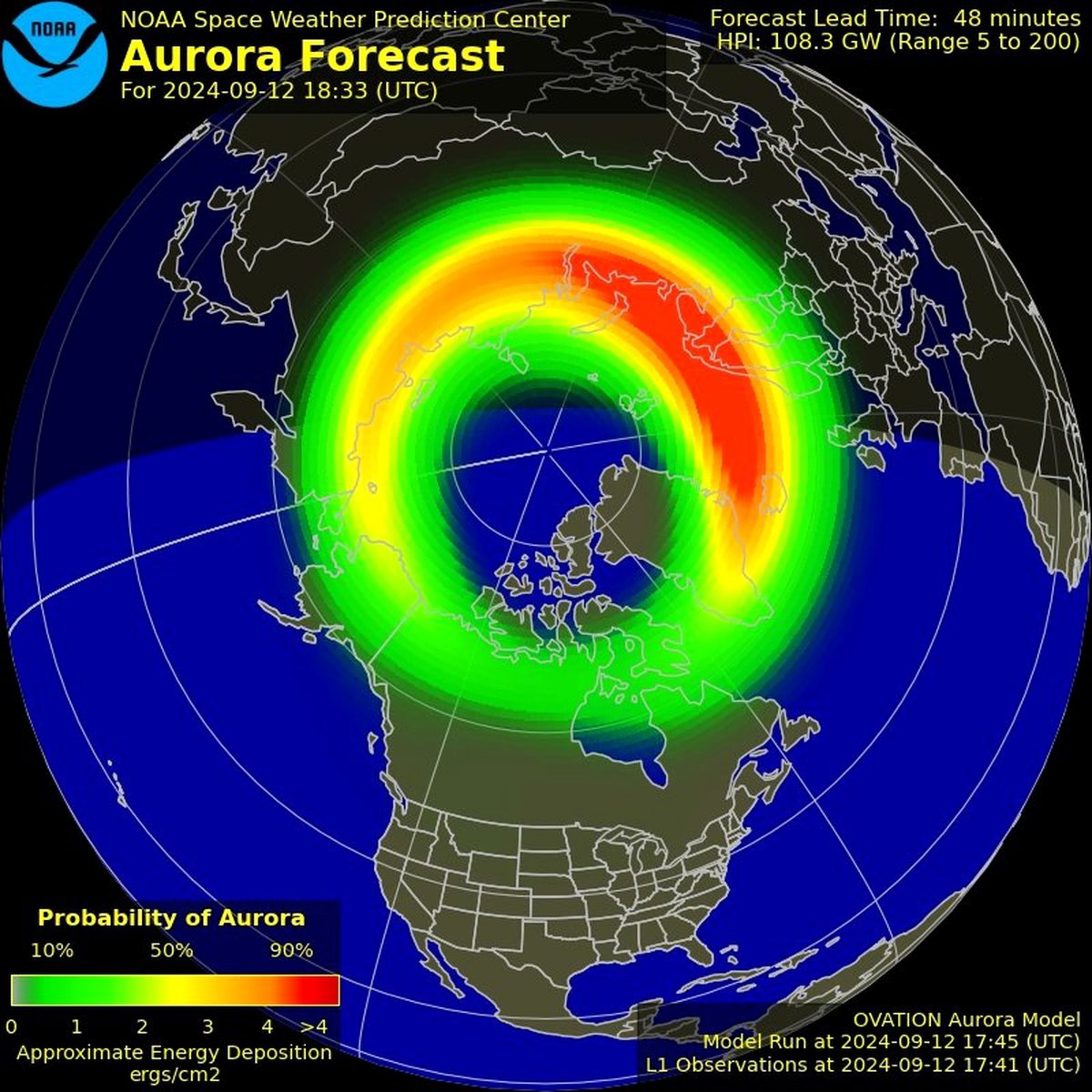 Согласно данным NOAA, наивысшая вероятность увидеть полярные сияния сейчас в северных регионах России и Европы. Пользователи социальных сетей из этих мест действительно очень активно выкладывают фотографии северных сияний.