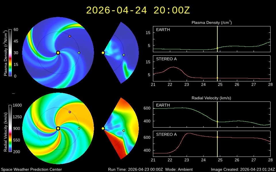 До глобальной геомагнитной бури дело не дойдет, однако 24 апреля возможны локальные возмущения. Земля сейчас выходит из потока частиц, исходившего от корональной дыры в атмосфере Солнца, на границе потока могут быть области с разной плотностью плазмы, влияющие на магнитосферу планеты.