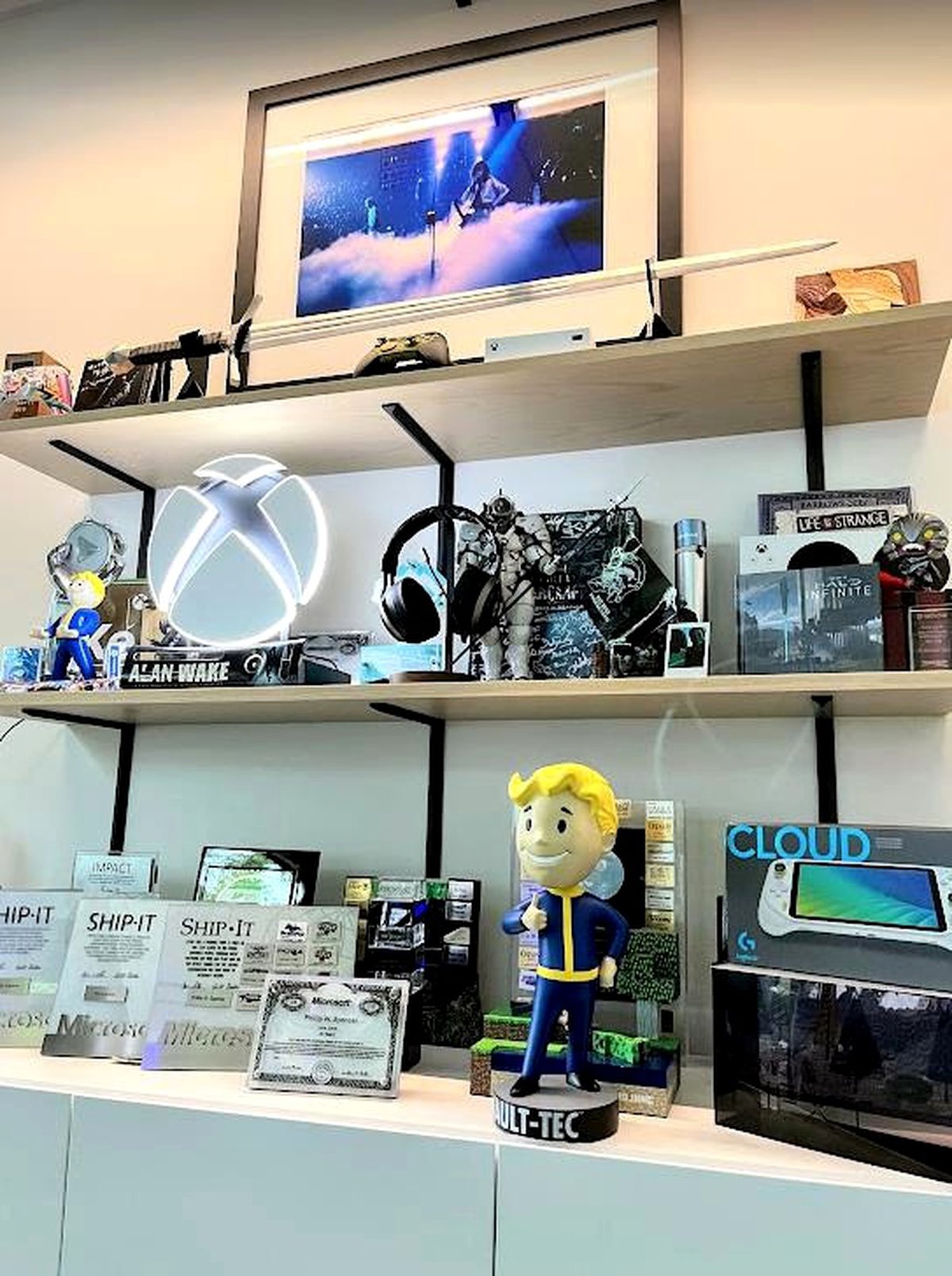 Изображения из патента подтверждают теорию о том, что Keystone протизерил Фил Спенсер, глава игрового подразделения Microsoft. Очень похожее устройство фанаты заметили на верхней полке в кабинете Спенсера.