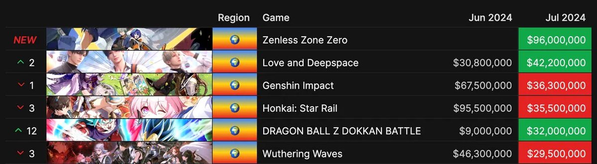Аналитика: Zenless Zone Zero — самая доходная мобильная игра в июле, Genshin и HSR резко просели